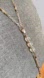 The necklace combines different chain styles, including cable chain and bar chain, adding textural interest.