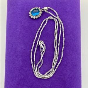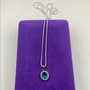 💛 Elegant Silver Plated Blue & White Crystal Pendant Necklace