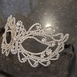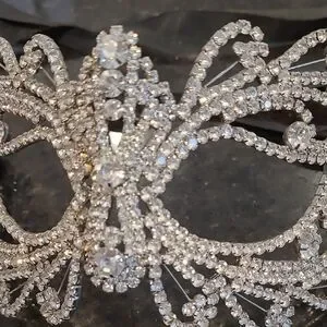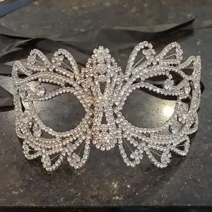 Dazzle at a New Year's event or masque with this outstanding silver rhinestone mask. Perfect for adding a touch of glamour and mystery to your outfit.