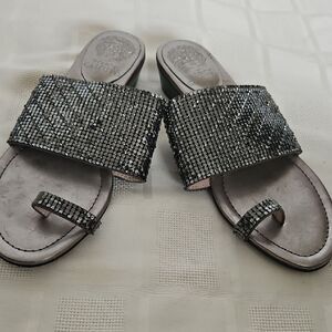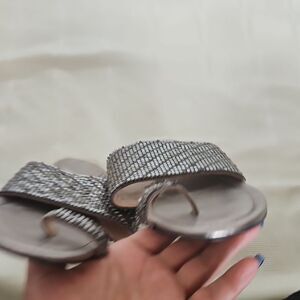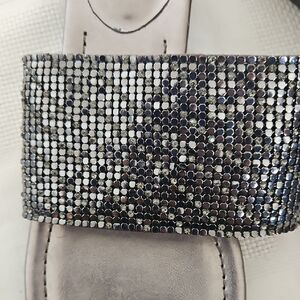 Step out in style with these elegant silver slide sandals. Perfect for any occasion, these shoes offer both comfort and glamour.