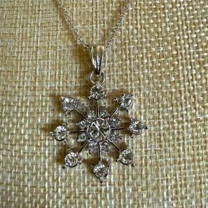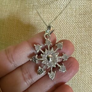 This stunning silver snowflake pendant necklace adds a touch of elegance to any outfit. Perfect for special occasions or everyday wear.