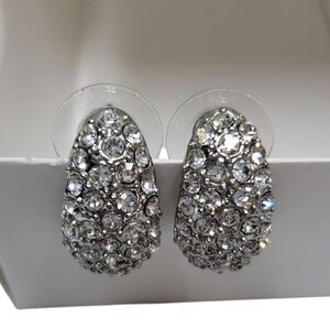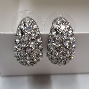 Elegant Silver Tone Crystal Pierced Earrings