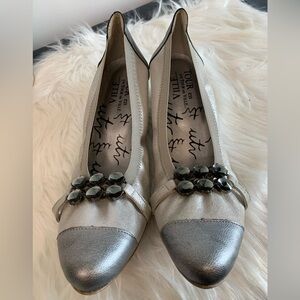 Step out in style with these elegant silver flats, featuring stunning gem accents. Perfect for any occasion, these shoes offer both comfort and sophistication.