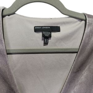 Shine in this elegant silver wrap dress, perfect for any occasion. The sleek design and shimmering fabric make it a standout piece in your wardrobe.
