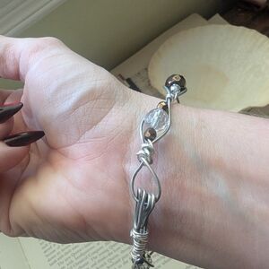 This elegant bracelet features a stunning combination of silver and black beads, perfect for adding a touch of sophistication to any outfit. The intricate design showcases the beauty of the silver and black colors, making it a versatile accessory for any occasion.