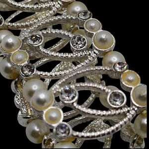 This elegant bracelet features a stunning combination of silver and pearl elements, perfect for adding a touch of sophistication to any outfit.