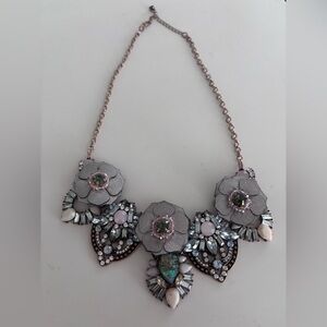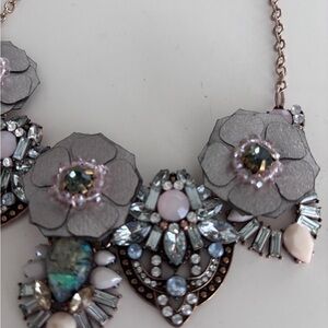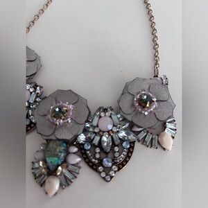 This stunning necklace features intricate floral designs in silver and pink tones. Perfect for adding a touch of elegance to any outfit.