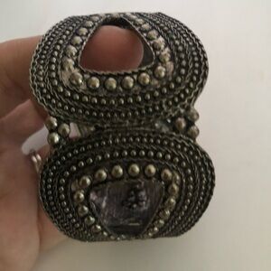 Elegant Silver gunmetal cuff bracelet with rhinestones. Preowned.