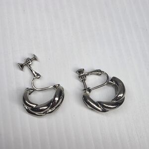 Elegant Silver toned braided Chunky Hoop clip on screw back Earrings