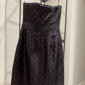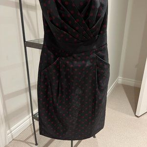 Black taffeta slim dress with pockets! Maroon dots and small slit in the back. Grosgrain at waist. White House Black Market. Size 00. Excellent like new condition.