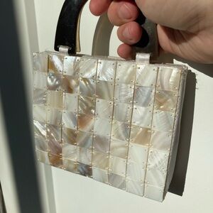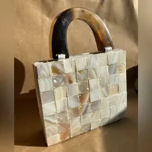 This elegant mother-of-pearl handbag features a unique shell design, perfect for adding a touch of drama to formal dress. Made in Thailand.