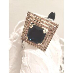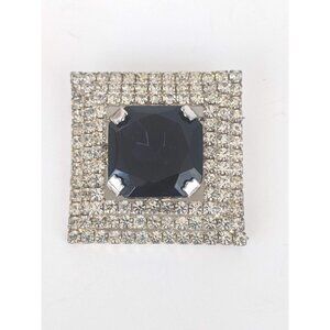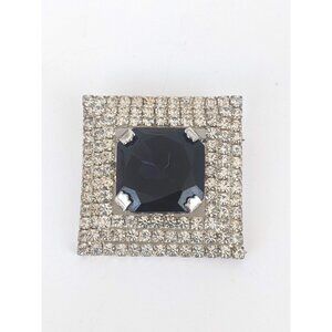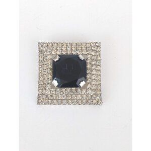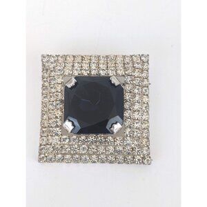 Elegant Square Black Brooch surrounded by Rhinestones Brooch with Black