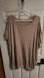 Discover elegance with this stylish tan open sleeve top. Perfect for casual outings, its soft fabric ensures comfort and style. Has a bit of rainbow metallic look to it.