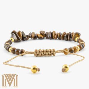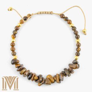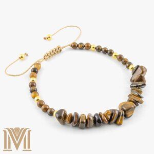 Elevate your style with this exquisite Tiger's Eye adjustable bracelet. Handcrafted with precision, this stunning piece features a combination of polished and raw Tiger's Eye gemstones, known for their mesmerizing golden-brown hues and unique chatoyancy. The bracelet is adorned with elegant gold-tone beads, adding a touch of sophistication. The adjustable design ensures a perfect fit for any wrist size, making it a versatile accessory for both casual and formal occasions. Embrace the natural beauty and protective qualities of Tiger's Eye with this must-have jewelry piece.