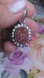 This stunning necklace features a shimmering pink pendant set in a delicate silver tone chain. Perfect for adding a touch of elegance to any outfit. chain is 16" long.