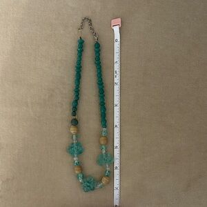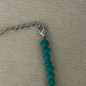 Enhance your style with this elegant turquoise beaded jewelry set. Perfect for any occasion, this set adds a touch of sophistication to your outfit. Lobster clasp on necklace. Bracelet is elastic.