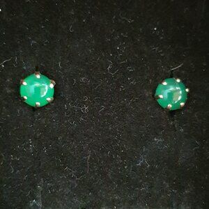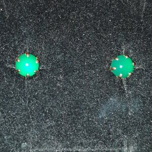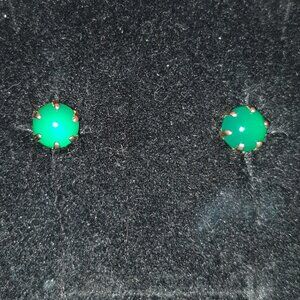 Elegant Vintage 14K Gold Natural Vivid Green Chrysoprase Cabochon Stud Earrings