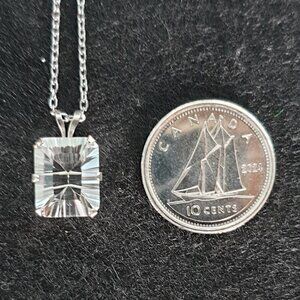 This vintage Italian 925 sterling silver necklace features a genuine white topaz that radiates pure brilliance. The minimalist design highlights the gemstone’s natural sparkle, creating a look that is effortlessly sophisticated — perfect for everyday wear or special occasions.