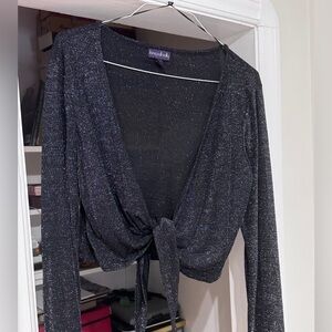 ✨ Elegant Vintage Long Tall Sally Black Glitter Tie-Front Shrug – Size L