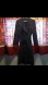 Stylish black double-breasted coat with a belt. Perfect for a sophisticated look. This coat is so beautiful with refined details. The lining is a beautiful satin maroon color. The Virgin wool is a navy, almost black. In minty vintage condition. All original buttons and strap.