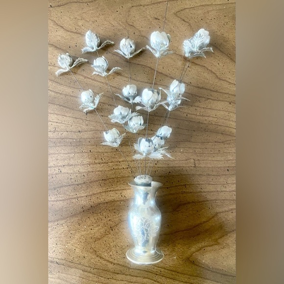 Elegant Vintage Silver Floral Vase with flowers
