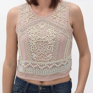 Elegant Vintage-Inspired Beaded Cropped Tank Top – Blush (Size L)