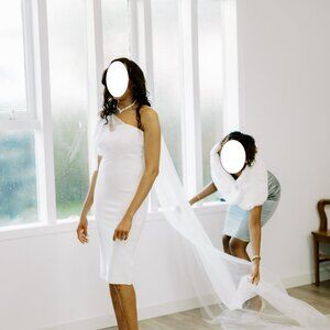 Model is wearing a single layer veil in ivory colour