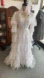 Stunning white lace wedding gown with tiered design. Features intricate lace details and a flowing silhouette.