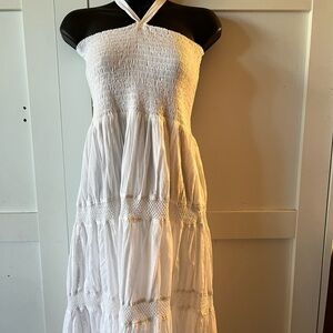 Elegant White Dress cotton natural fabric farmhouse dress vacation dress crochet