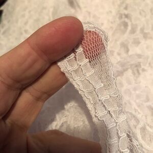 Beautiful white lace fabric with intricate floral patterns. Perfect for crafting or fashion projects. 72” by 150” , a little stretch. Lots of sewing ideas for this piece of delicious vintage lace fabric