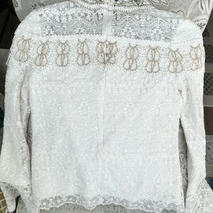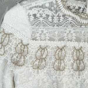 This elegant white lace top is perfect for any occasion. Its intricate design adds a touch of sophistication to your wardrobe.