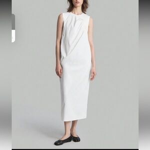 This elegant white sleeveless dress offers a timeless and sophisticated look. Perfect for any occasion, it combines style and comfort effortlessly.