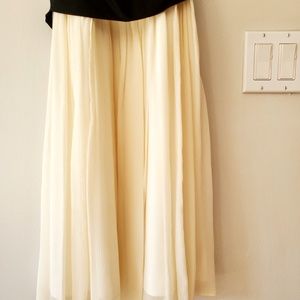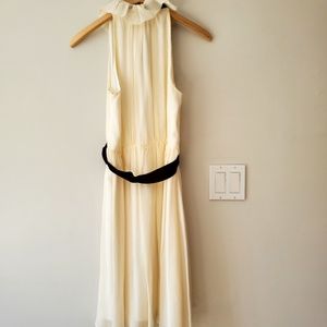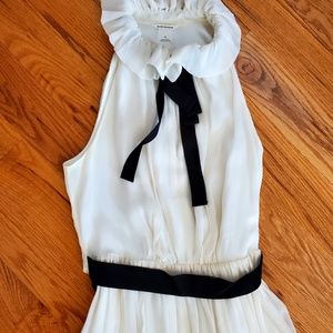 This elegant sleeveless dress features a classic white design with striking black accents. Perfect for any occasion, it offers a sophisticated and timeless look.