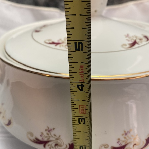 Enhance your dining experience with this elegant white porcelain tureen, featuring delicate gold accents. Perfect for serving soups and stews in style.
