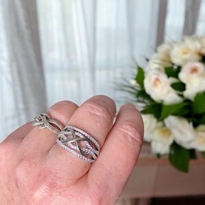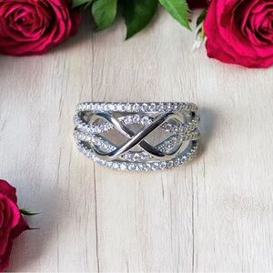 Elegant Wide Band Sterling Silver 925 Infinity Ring, Cubic Zirconia Inlaid.