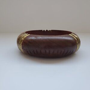 Elegant Women's Bold Bangle Bracelet Carved Solid Wood & Brass Accents Boho 8"