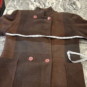 Elevate your wardrobe with this elegant brown pea coat, perfect for any occasion.