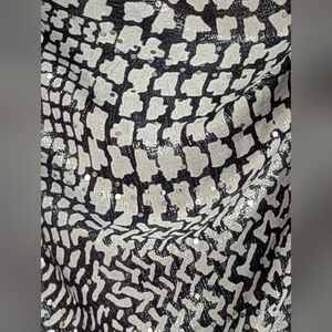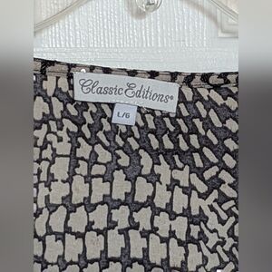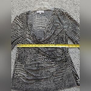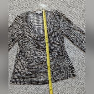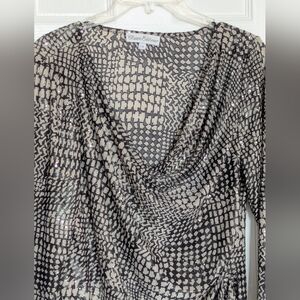 Elegant Women's (Size Large) Black & Tan Cowl Neck Rouched Shimmering Blouse/Top