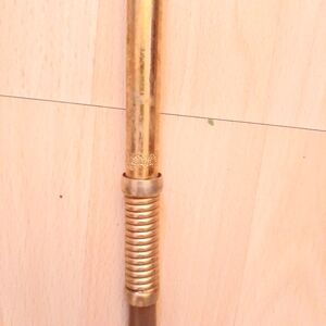 Elegant Wooden Shoe Horn with decorative brass and horn construction.