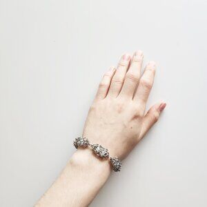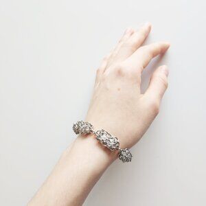 Elegant antique style chainmaille caged beads chunky silver bracelet