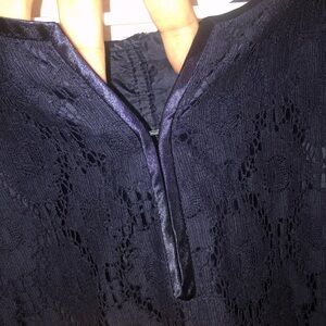 Elegant dark blue Lace Dress by Adrienne Papell . Classic dress with bell sleeve