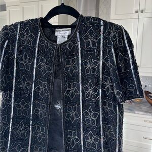 Elegant gala event little black beaded dinner, jacket size small vintage beaded🍾