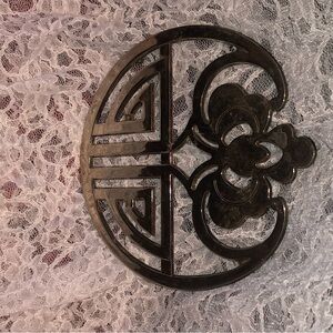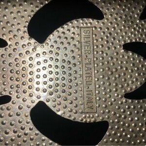 Elegant silver plate, made in Italy, trivet shape of Lotus.. Place your hot dishes on this trivet , your pot of tea or just use for decoration. Reduced price because rubber is missing on bottom. I am going to try and find replacements