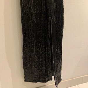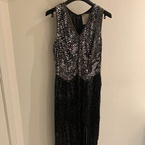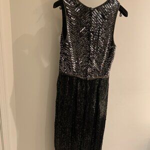 Elegant, sleek sequin/silk charcoal and black evening dress