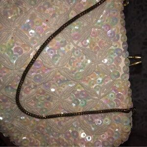 Elegant white Clutch with Iridescent Sequins and Gold Frame made by Du Val.