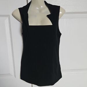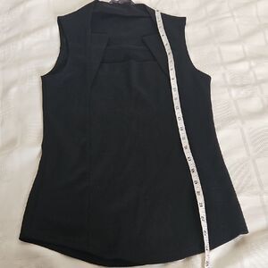 This elegant black sleeveless top is perfect for any occasion. Its sleek design offers a sophisticated look.