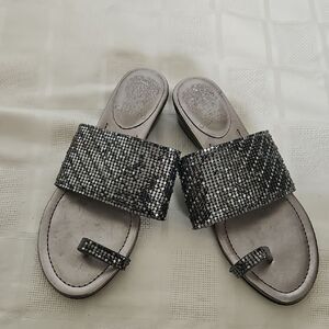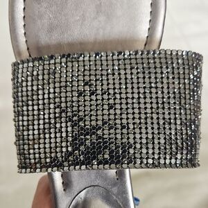 Step out in style with these elegant silver slide sandals. Perfect for any occasion, these shoes offer both comfort and glamour.