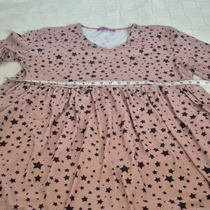 This elegant pink midi dress features a charming star pattern, perfect for any occasion. The soft fabric and stylish design ensure comfort and sophistication.