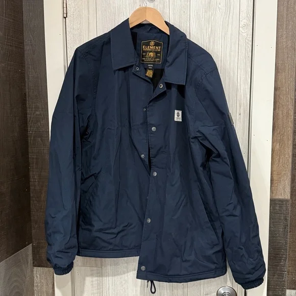 Navy blue jacket by Element. Material feels water resistant.