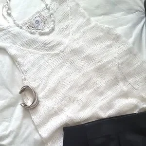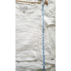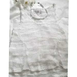 Boho super soft lightweight sleeveless fishnet white knit top from "element".